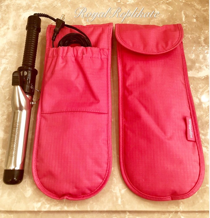 Here is a flat lay of the hair products and styling tools that I use. I love using my Baggallini hair tool travel bags, they are perfect for when your hair appliances aren’t cooled and you need to stow them in your suitcase.